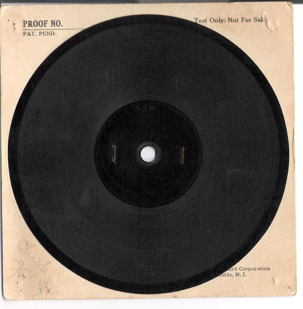 6 Matrix 356 This card has the record only and is identified as "PROOF NO / PAT. PEND / Test Only: Not For Sale / Advertising Record Corporation Cliffside, N.J.", Nothing on reverse.